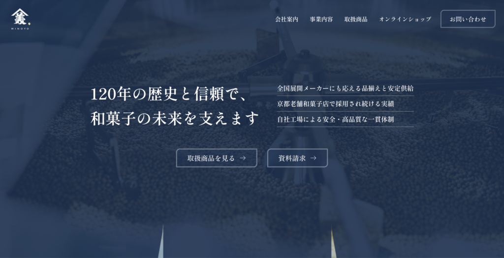 新しいホームページでは、美濃与が長年にわたり培ってきた和菓子原材料の知識や商品情報をより丁寧に紹介するとともに、オンラインショップへのリンクも見やすく配置しています。これにより、美濃与の商品をご検討・ご購入いただく方にとって利便性が向上しています。