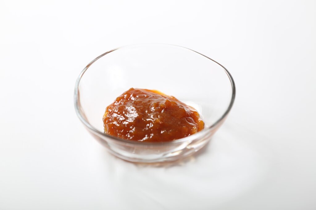 生柿ペーストは、完熟した柿を加熱処理を最小限に抑えてペースト状に加工し、果実本来の風味と色味を活かした原料です。柿特有のやさしい甘みと自然なコクがあり、酸味が少ないため他素材と組み合わせやすいのが特長です。なめらかな質感の中に、柿由来の果実感が残る仕上がりで、素材感を重視した商品づくりに向いています。計量や配合がしやすく、加工工程にも取り入れやすいペーストです。